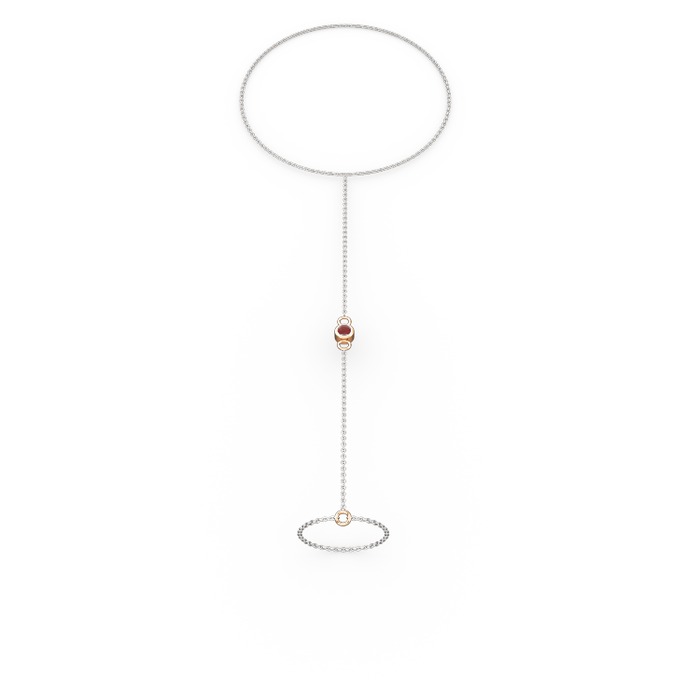Kök yakut 14 ayar rose altın bilezik (40 cm beyaz altın rolo zincir)