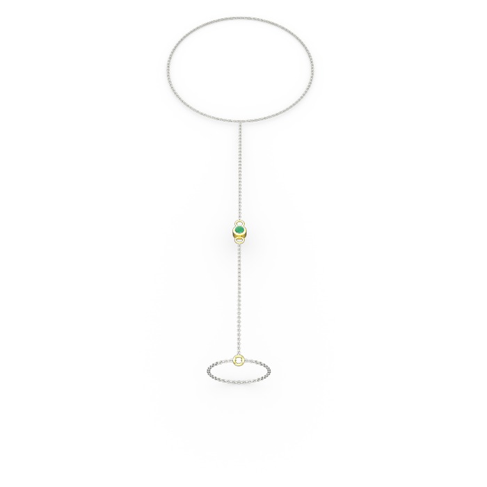 Kök zümrüt 18 ayar altın bilezik (40 cm beyaz altın rolo zincir)