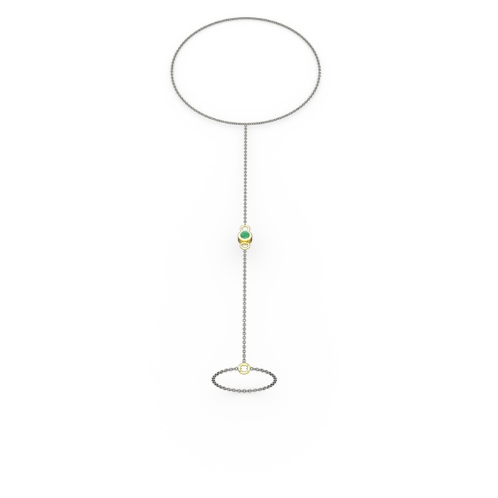 Kök zümrüt 18 ayar altın bilezik (40 cm gümüş rolo zincir)