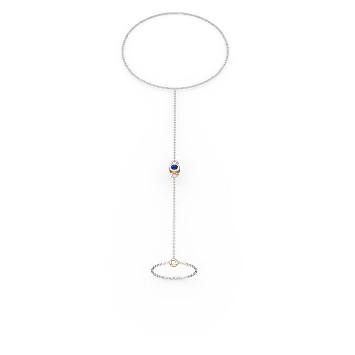 Lab safir 18 ayar rose altın bilezik (40 cm beyaz altın rolo zincir)