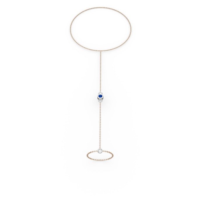 Lab safir 925 ayar gümüş bilezik (40 cm rose altın rolo zincir)