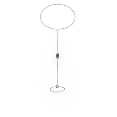 Lab safir 925 ayar siyah rodyum kaplama gümüş bilezik (40 cm beyaz altın rolo zincir)
