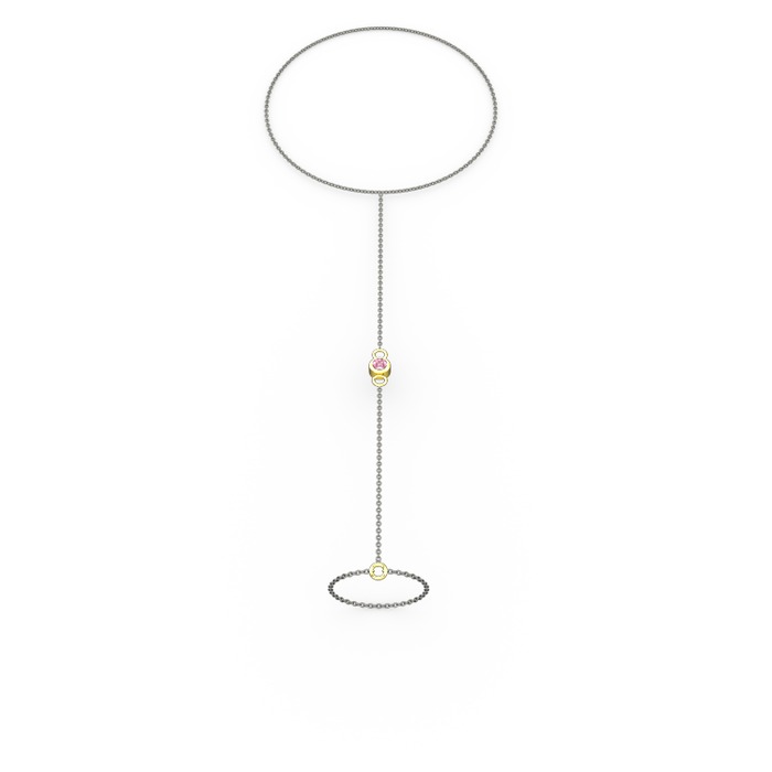 Pembe kuvars 8 ayar altın bilezik (40 cm gümüş rolo zincir)