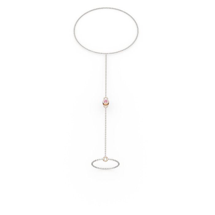 Pembe kuvars 925 ayar rose altın kaplama gümüş bilezik (40 cm gümüş rolo zincir)