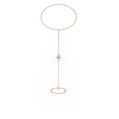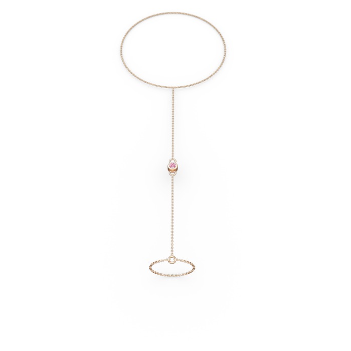 Pembe kuvars 925 ayar rose altın kaplama gümüş bilezik (40 cm rose altın rolo zincir)