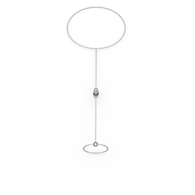 Pembe kuvars 925 ayar siyah rodyum kaplama gümüş bilezik (40 cm beyaz altın rolo zincir)