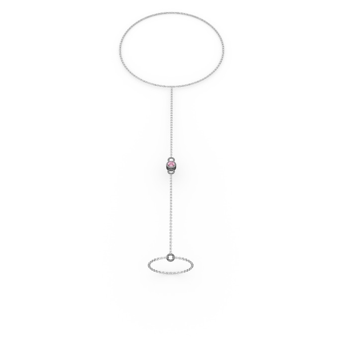 Pembe kuvars 925 ayar siyah rodyum kaplama gümüş bilezik (40 cm beyaz altın rolo zincir)