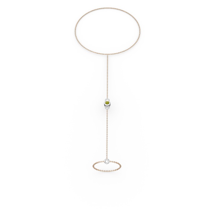 Peridot 18 ayar beyaz altın bilezik (40 cm gümüş rolo zincir)