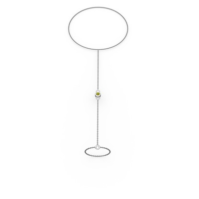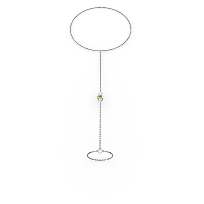 Peridot 8 ayar beyaz altın bilezik (40 cm gümüş rolo zincir)