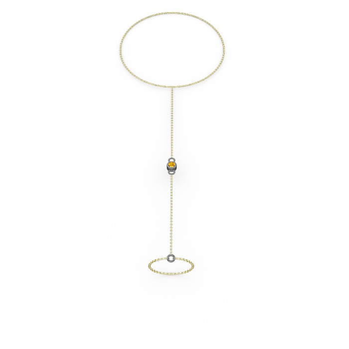 Sitrin 925 ayar siyah rodyum kaplama gümüş bilezik (40 cm altın rolo zincir)