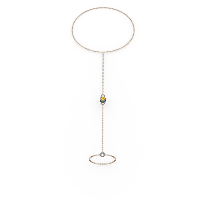 Sitrin 925 ayar siyah rodyum kaplama gümüş bilezik (40 cm rose altın rolo zincir)