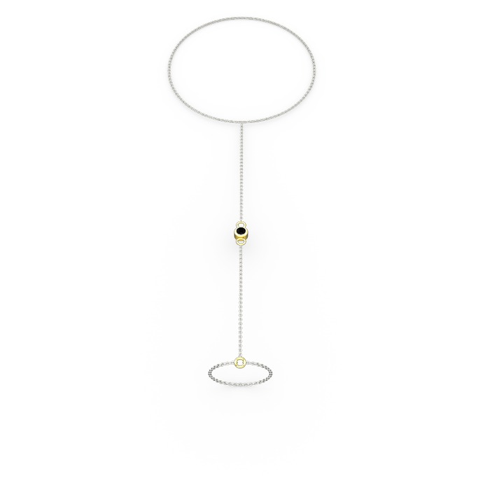 Siyah zirkon 14 ayar altın bilezik (40 cm beyaz altın rolo zincir)