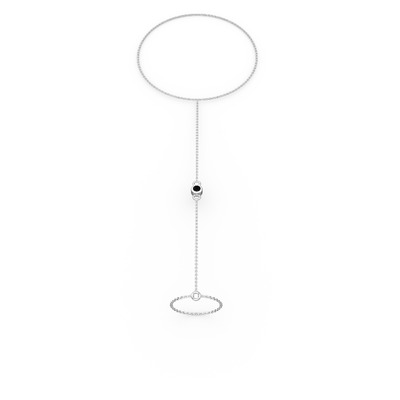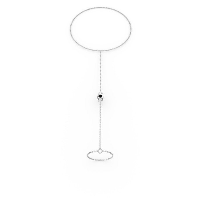 Siyah zirkon 14 ayar beyaz altın bilezik (40 cm beyaz altın rolo zincir)