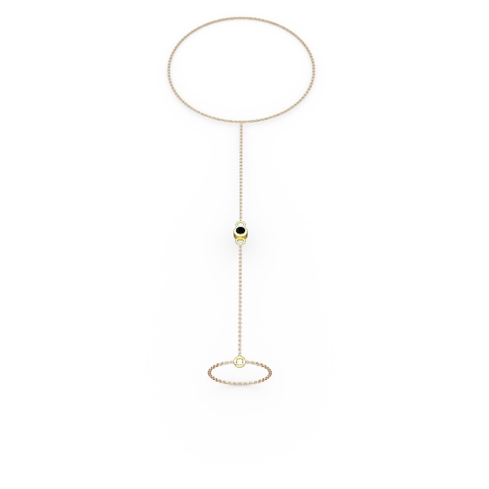 Siyah zirkon 925 ayar altın kaplama gümüş bilezik (40 cm rose altın rolo zincir)