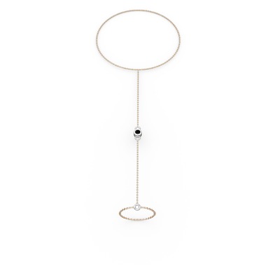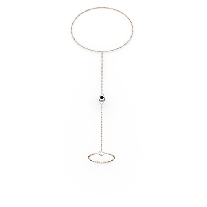 Siyah zirkon 925 ayar gümüş bilezik (40 cm rose altın rolo zincir)