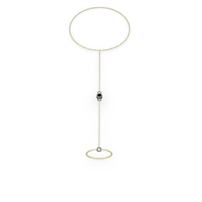 Siyah zirkon 925 ayar siyah rodyum kaplama gümüş bilezik (40 cm altın rolo zincir)