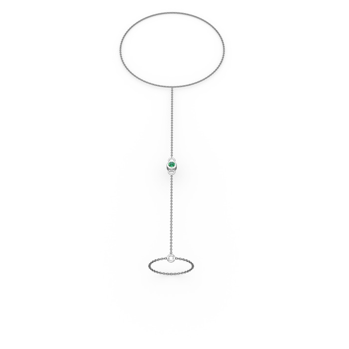 Yeşil kuvars 18 ayar beyaz altın bilezik (40 cm gümüş rolo zincir)