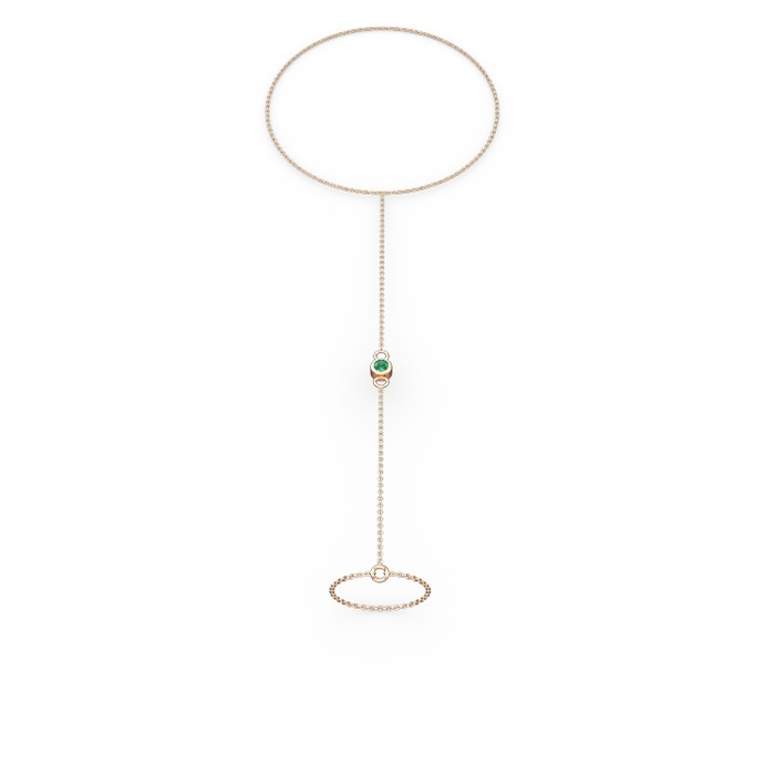 Yeşil kuvars 925 ayar rose altın kaplama gümüş bilezik (40 cm rose altın rolo zincir)