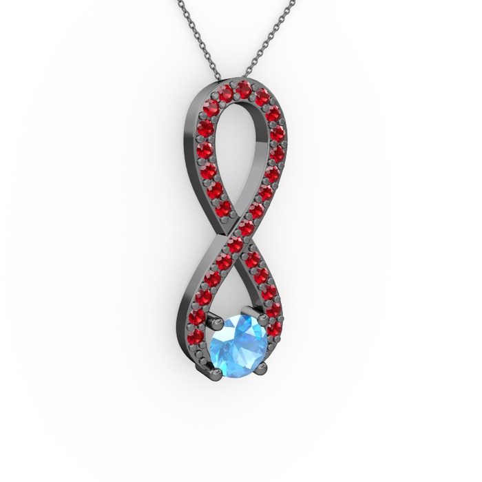 Akuamarin ve garnet 925 ayar siyah rodyum kaplama gümüş kolye (40 cm gümüş rolo zincir)