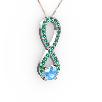Akuamarin ve yeşil kuvars 14 ayar beyaz altın kolye (40 cm rose altın rolo zincir)