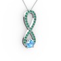 Akuamarin ve yeşil kuvars 8 ayar beyaz altın kolye (40 cm gümüş rolo zincir)