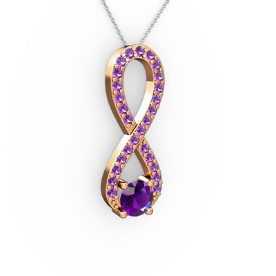Ametist 18 ayar rose altın kolye (40 cm beyaz altın rolo zincir)