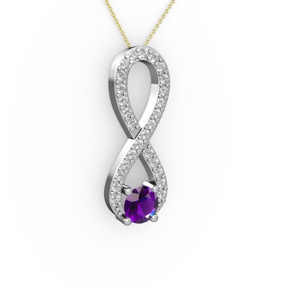 Ametist ve beyaz zirkon 925 ayar gümüş kolye (40 cm altın rolo zincir)