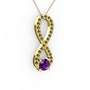Ametist ve dumanlı kuvars 14 ayar altın kolye (40 cm rose altın rolo zincir)