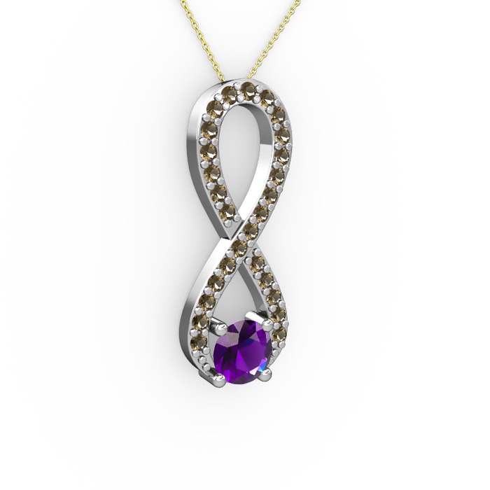 Ametist ve dumanlı kuvars 8 ayar beyaz altın kolye (40 cm altın rolo zincir)