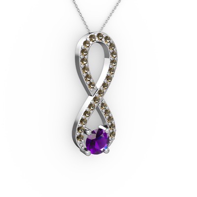 Ametist ve dumanlı kuvars 8 ayar beyaz altın kolye (40 cm beyaz altın rolo zincir)