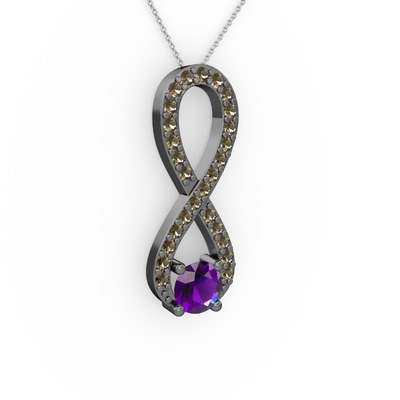 Ametist ve dumanlı kuvars 925 ayar siyah rodyum kaplama gümüş kolye (40 cm beyaz altın rolo zincir)