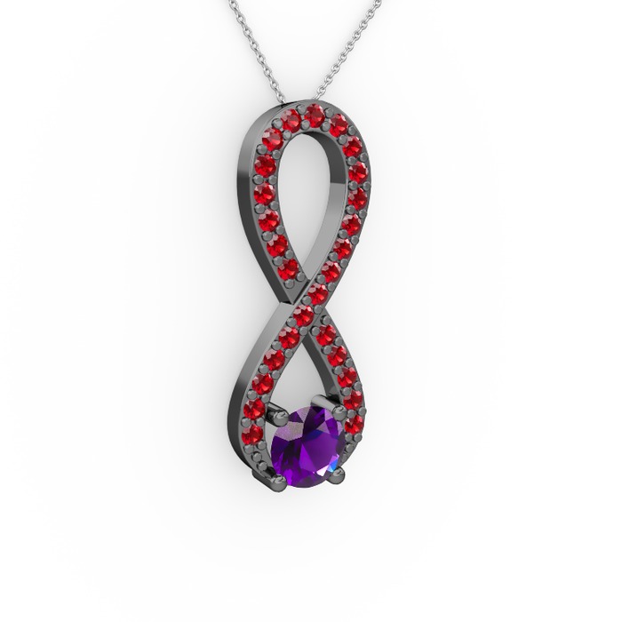 Ametist ve garnet 925 ayar siyah rodyum kaplama gümüş kolye (40 cm beyaz altın rolo zincir)