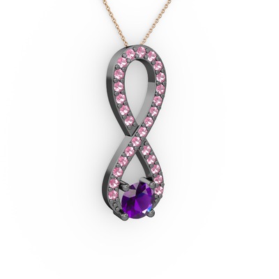 Ametist ve pembe kuvars 925 ayar siyah rodyum kaplama gümüş kolye (40 cm gümüş rolo zincir)