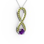Ametist ve peridot 18 ayar beyaz altın kolye (40 cm beyaz altın rolo zincir)