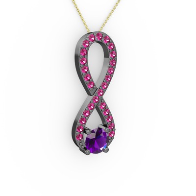 Ametist ve rodolit garnet 925 ayar siyah rodyum kaplama gümüş kolye (40 cm altın rolo zincir)
