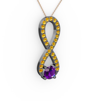 Ametist ve sitrin 925 ayar siyah rodyum kaplama gümüş kolye (40 cm gümüş rolo zincir)