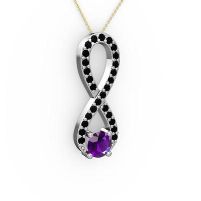 Ametist ve siyah zirkon 14 ayar beyaz altın kolye (40 cm altın rolo zincir)