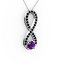 Ametist ve siyah zirkon 8 ayar beyaz altın kolye (40 cm beyaz altın rolo zincir)