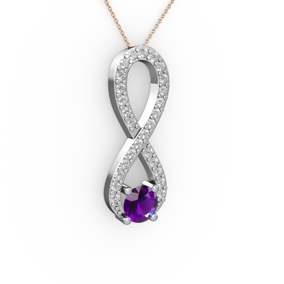 Ametist ve swarovski 14 ayar beyaz altın kolye (40 cm rose altın rolo zincir)