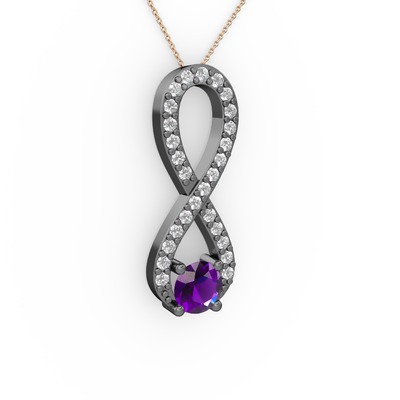 Ametist ve swarovski 925 ayar siyah rodyum kaplama gümüş kolye (40 cm rose altın rolo zincir)