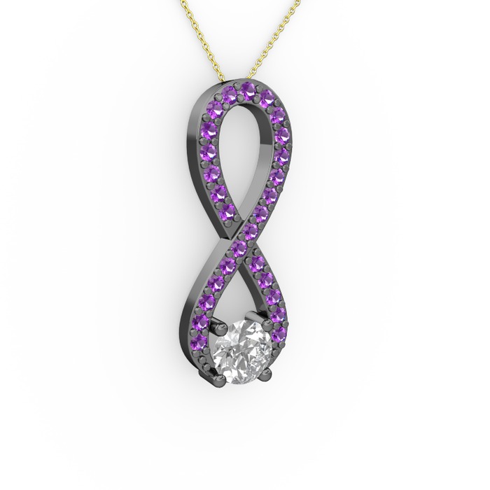 Beyaz zirkon ve ametist 925 ayar siyah rodyum kaplama gümüş kolye (40 cm altın rolo zincir)