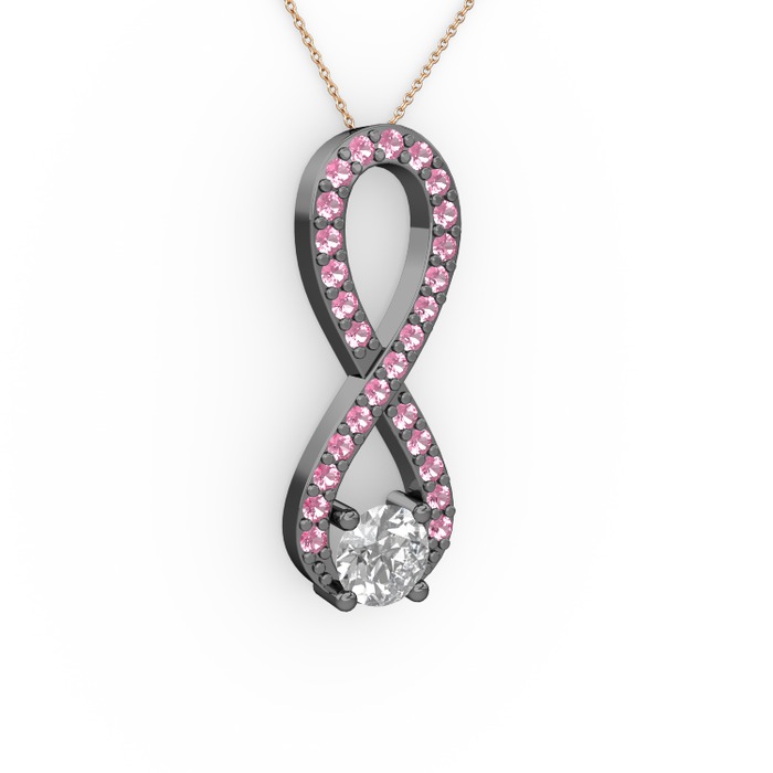 Beyaz zirkon ve pembe kuvars 925 ayar siyah rodyum kaplama gümüş kolye (40 cm rose altın rolo zincir)