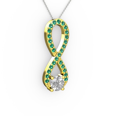 Beyaz zirkon ve yeşil kuvars 925 ayar altın kaplama gümüş kolye (40 cm gümüş rolo zincir)
