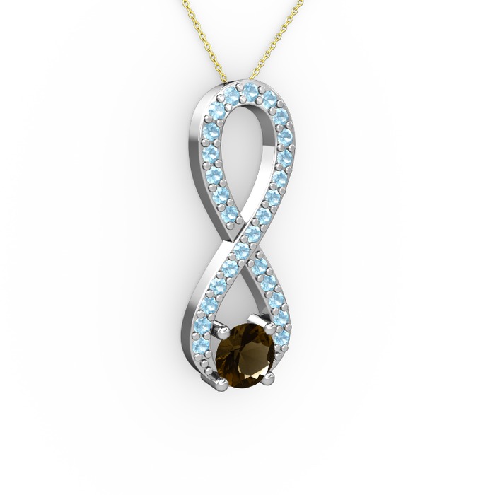 Dumanlı kuvars ve akuamarin 14 ayar beyaz altın kolye (40 cm altın rolo zincir)