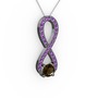 Dumanlı kuvars ve ametist 925 ayar siyah rodyum kaplama gümüş kolye (40 cm beyaz altın rolo zincir)