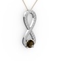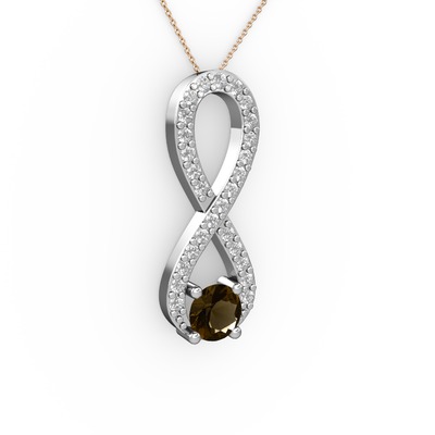 Dumanlı kuvars ve beyaz zirkon 18 ayar beyaz altın kolye (40 cm gümüş rolo zincir)