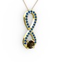 Dumanlı kuvars ve lab safir 925 ayar altın kaplama gümüş kolye (40 cm gümüş rolo zincir)