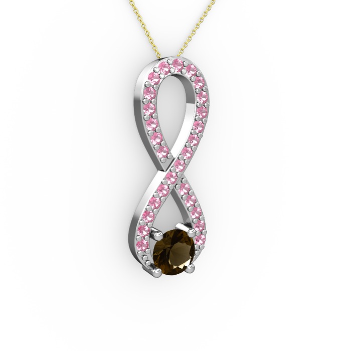 Dumanlı kuvars ve pembe kuvars 18 ayar beyaz altın kolye (40 cm altın rolo zincir)
