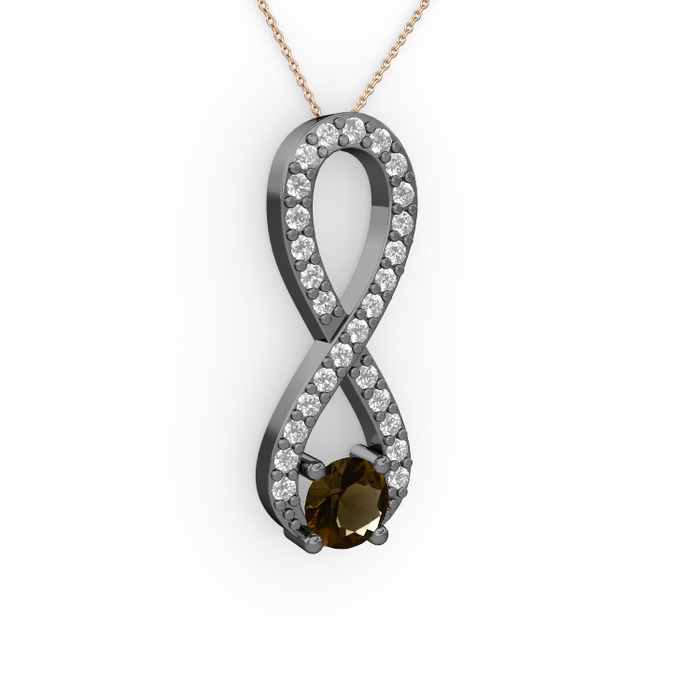 Dumanlı kuvars ve swarovski 925 ayar siyah rodyum kaplama gümüş kolye (40 cm rose altın rolo zincir)