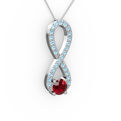 Garnet ve akuamarin 18 ayar beyaz altın kolye (40 cm beyaz altın rolo zincir)